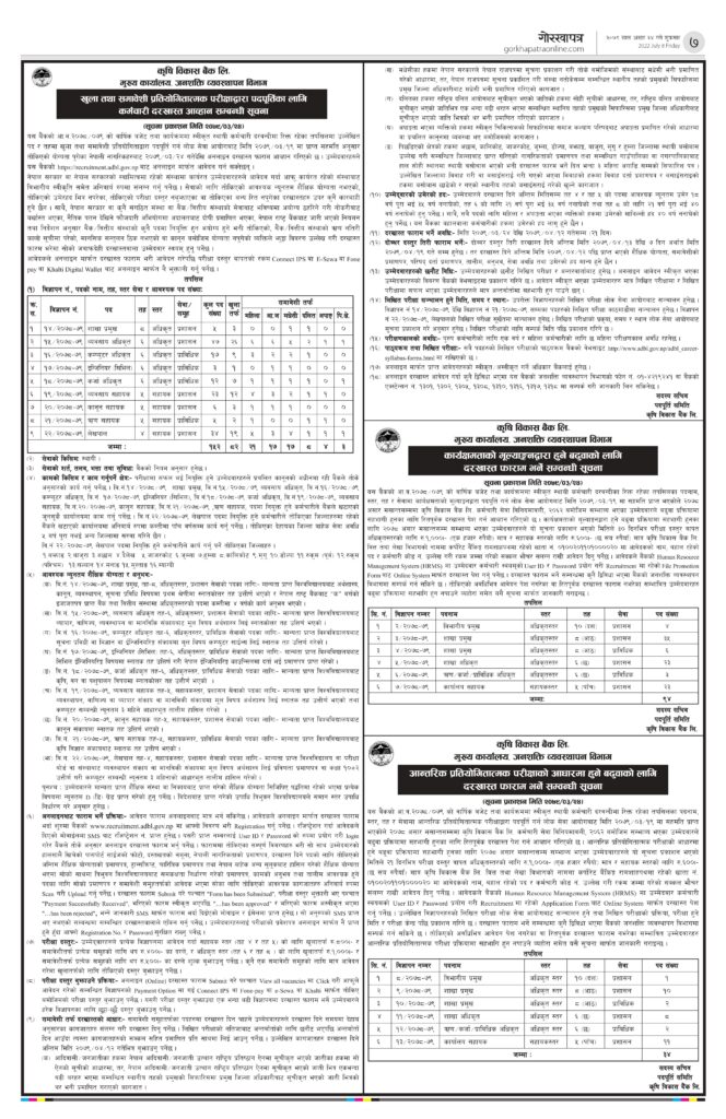 Agriculture Development Bank (ADBL) published job vacancy notice in various posts and level. Krishi Bikash Bank published job vacancy notice for various posts all over Nepal. Officer Level to Assistant Level Job Vacancy notice published by Agriculture development bank. Agricultural Development Bank, Nepal was established in 1968 under the ADBN Act 1967, as successor to the cooperative Bank. The Land Reform Savings Corporation was merged with ADBN in 1973. Subsequent amendments to the Act empowered the bank to extend credit to small farmers under group liability and expand the scope of financing to promote cottage industries. The amendments also permitted the bank to engage in commercial banking activities for the mobilization of domestic resources.
